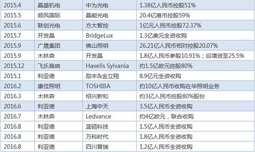 表十:近三年照明行業(yè)相關(guān)較具影響力的并購案例