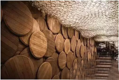 一個(gè)酒吧用什么來裝飾自己?烏克蘭的Shustov Brandy Bar實(shí)在別出心裁,墻面鋪的是陳年酒桶的蓋子,有一部分的天花竟然鋪滿了一個(gè)個(gè)玻璃啤酒杯,整體效果竟然無比晶瑩剔透,人從下面走著,不知道會(huì)不會(huì)有些心驚膽跳,擔(dān)心著這些以前盛滿酒精的杯子,會(huì)不會(huì)一不小心掉下來,砸中頭頂。