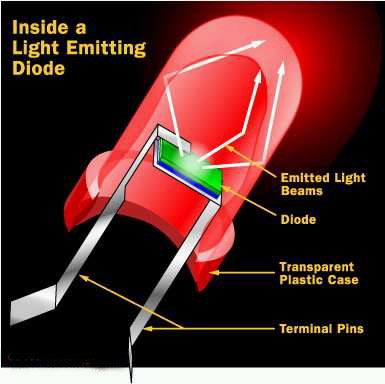 基本上,發(fā)光二極管只是一個(gè)微小的電燈泡。但不像常見的白熾燈泡,發(fā)光二極管沒有燈絲,而且又不會(huì)特別熱。它單單是由半導(dǎo)體材料里的電子移動(dòng)而使它發(fā)光。