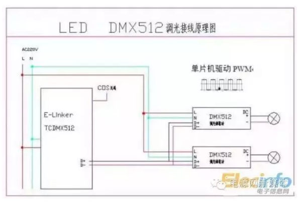 在實際應(yīng)用中,DMX512的控制方式,一般是將電源和控制器設(shè)計在一起。