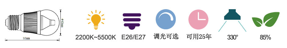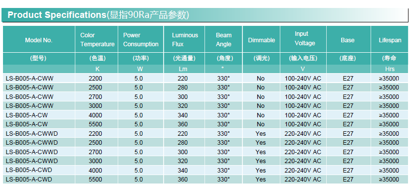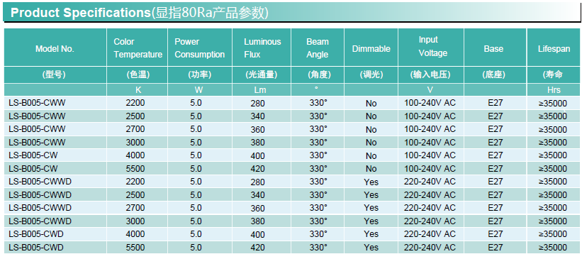 通用型號(hào) —— 球泡燈 均壽命(4H/天) —— 25年