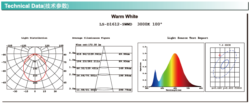 燈體寬(開孔) —— 125mm 封裝技術(shù) —— COB