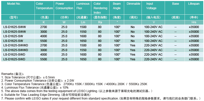 通用型號 —— 筒燈 均壽命(4H/天) —— 25年