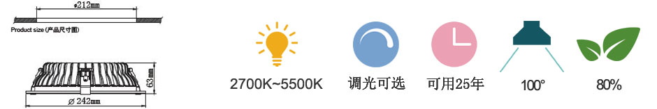 燈體寬(開孔) —— 212mm 封裝技術(shù) —— COB