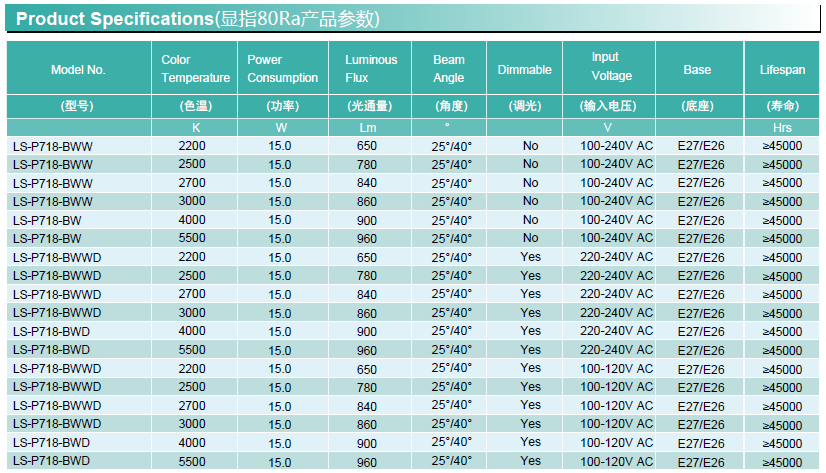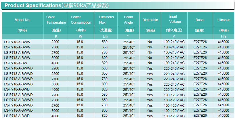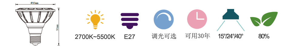 通用型號(hào) —— Par30 壽命(4H/天) —— 30年