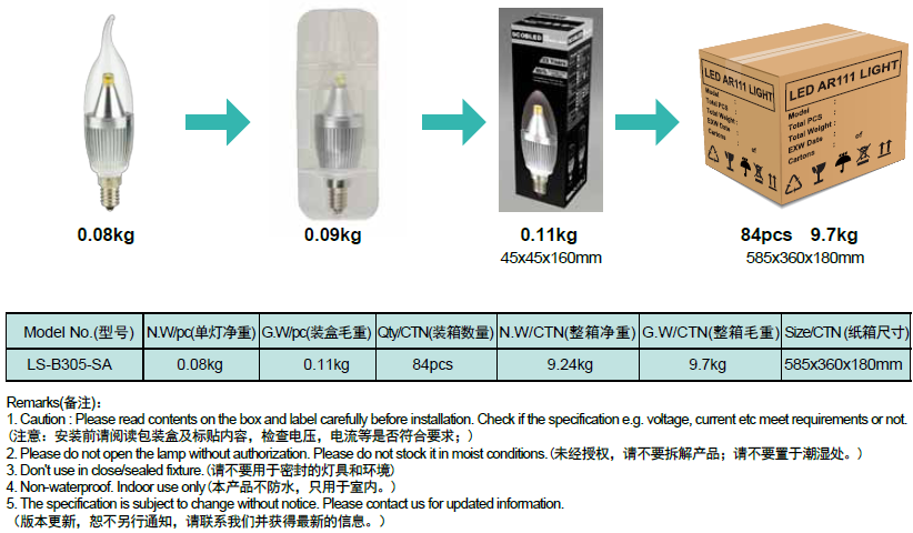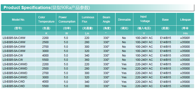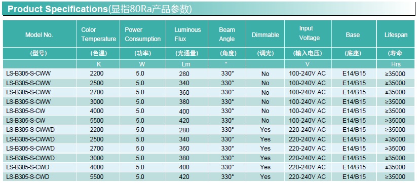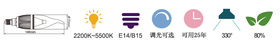 通用型號(hào) —— 蠟燭燈 均壽命(4H/天) —— 25年