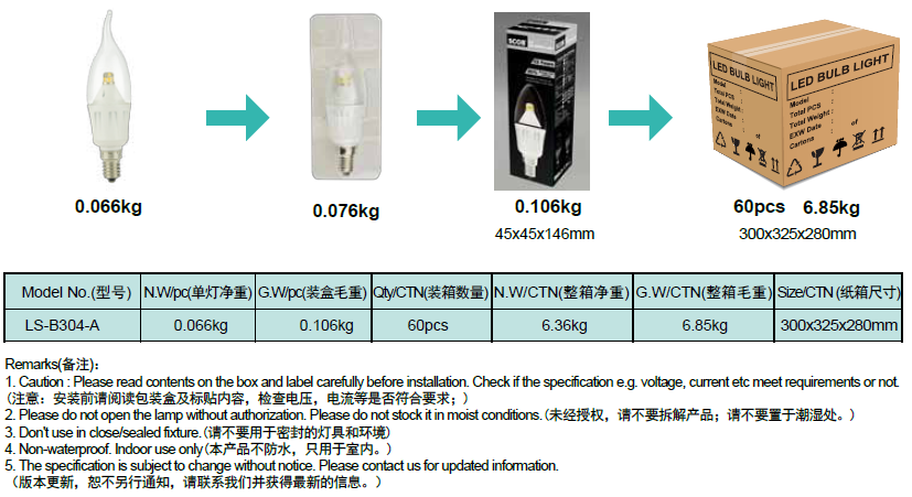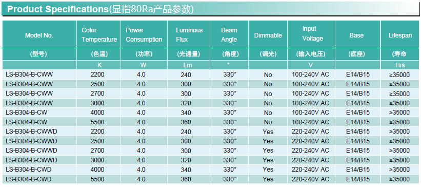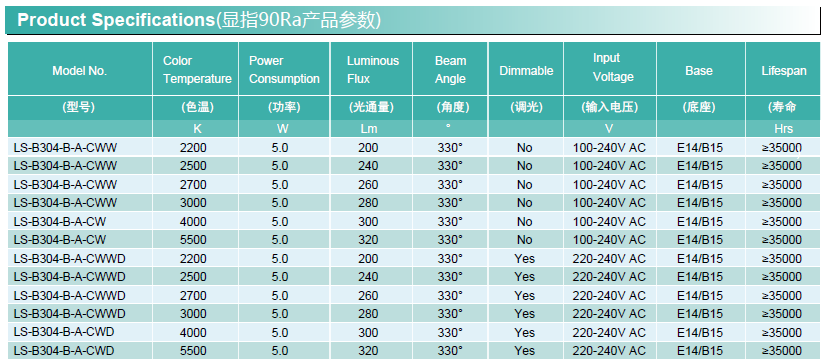 LED 蠟燭燈 LS-B304-E14/B15 [支持定制光電參數(shù)]