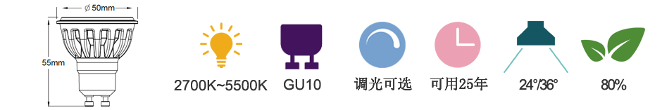 底座 —— GU10 額定壽命(小時) —— 35,000hr