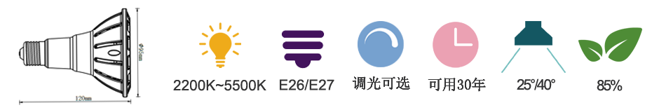 通用型號(hào) —— PAR20 均壽命(4H/天) —— 30年