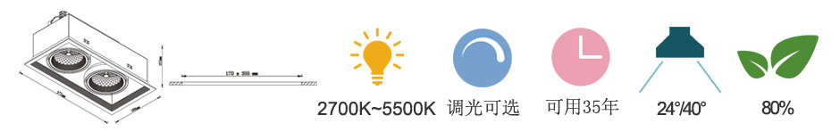 面邊長 —— 372*188mm 適用重點照明 —— 否
