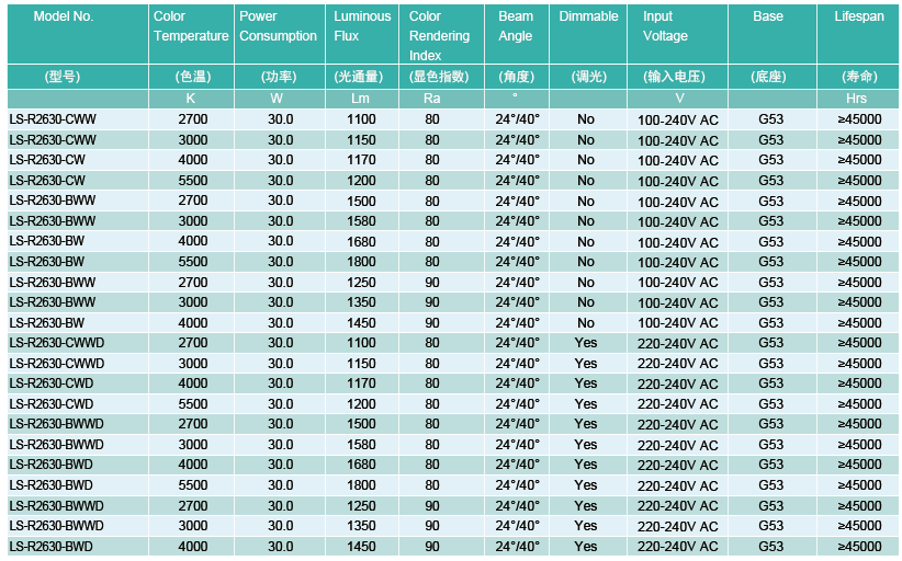 通用型號 —— 斗膽燈 均壽命(4H/天) —— 30年