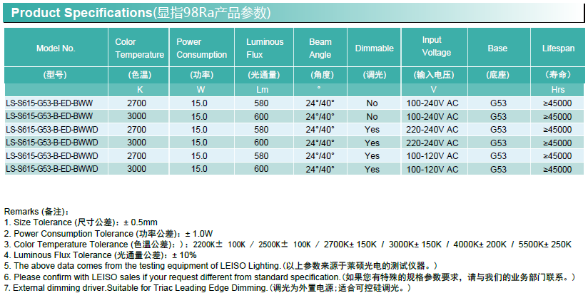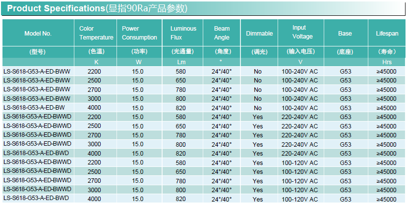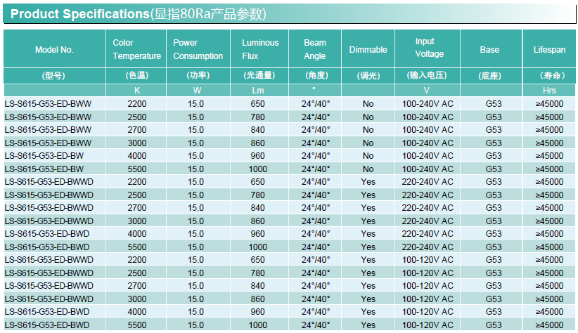 通用型號 —— AR111 均壽命(4H/天) —— 30年