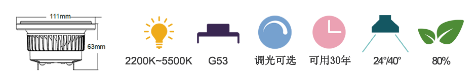 面直徑 —— 111mm 適用重點照明 —— 否