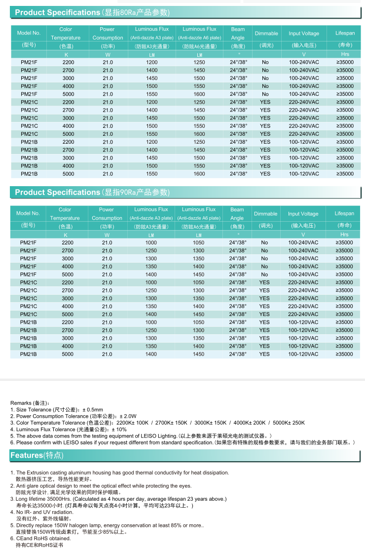 通用型號 —— PM21 均壽命(4H/天) —— 30年