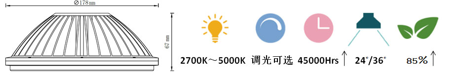 燈體寬(開(kāi)孔) —— 67mm 反光設(shè)計(jì) —— 是