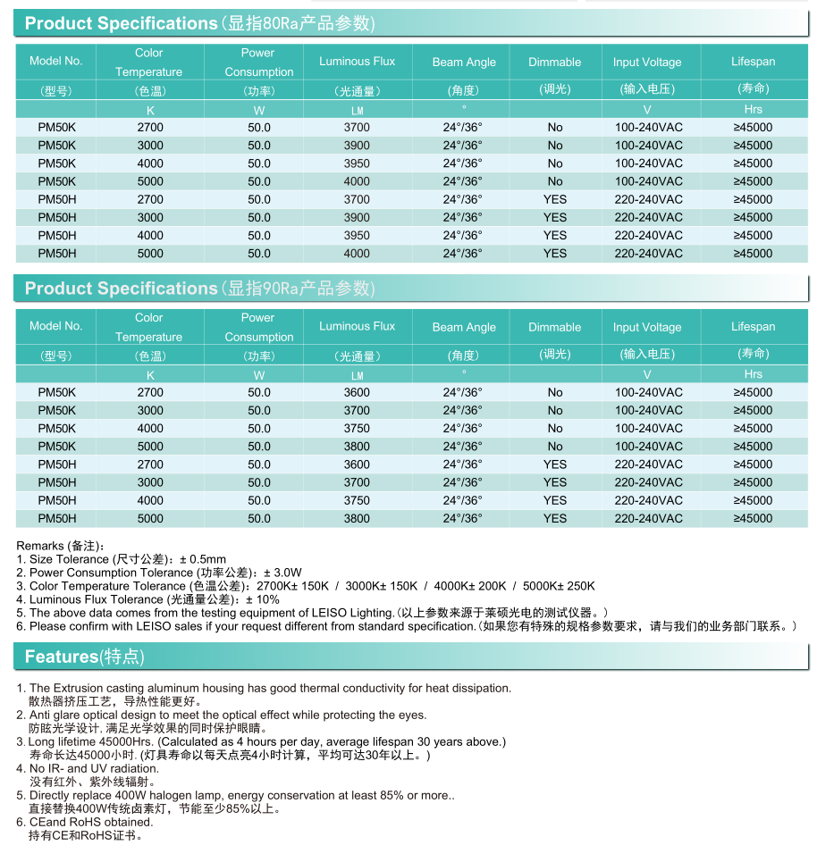通用型號(hào) —— PM50 均壽命(4H/天) —— 30年